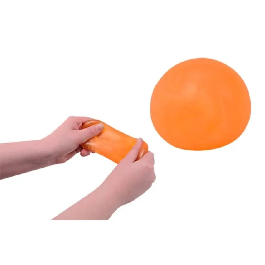 Beroendeframkallande, klämbar smidig boll. Massan inuti bollen återgår långsamt till sin form. Bollen diameter 6 cm. Fyra skimrande färger att välja. Åldersrekommendation 3+ år.