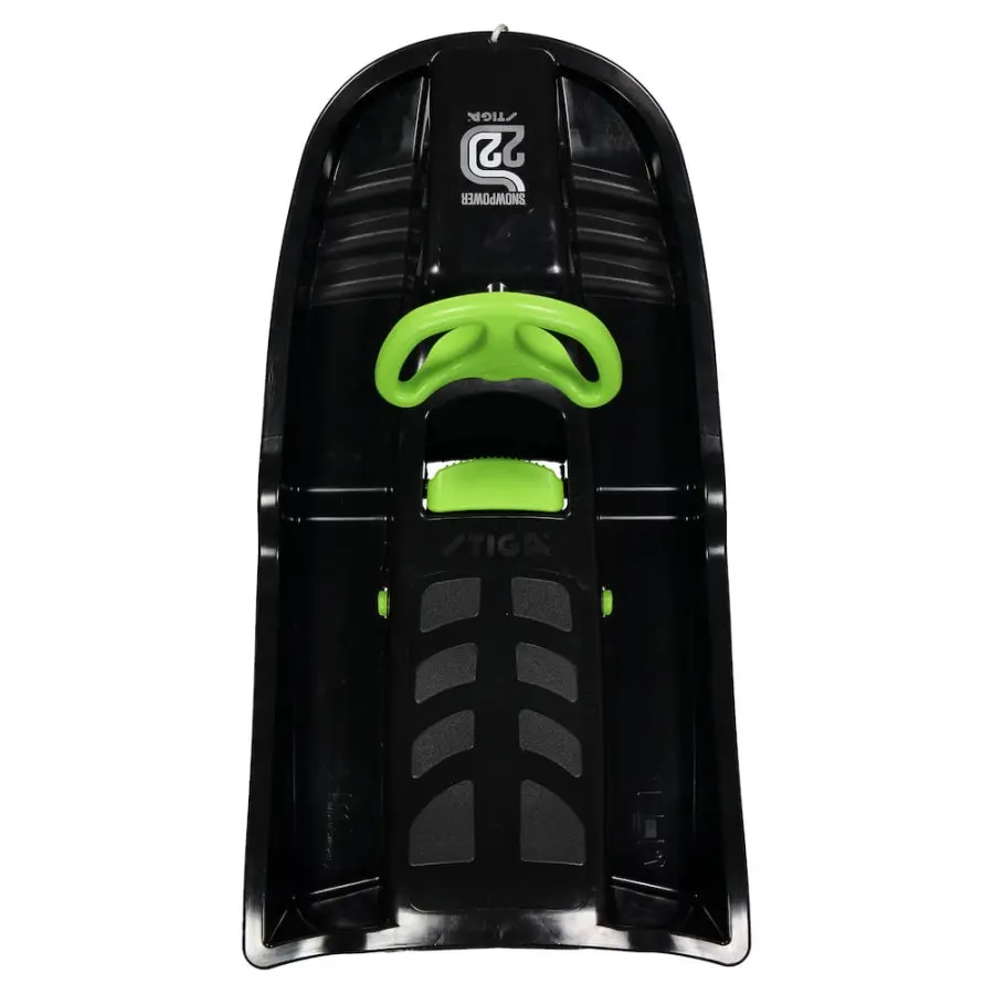 Snowpower styrsläden är en ny generations släde med en väldesignad och hållbar plastram. Lätt att styra med en ratt som driver de två nedanstående skidorna. Tack vare plastramen är den mindre tung än andra styrslädar och det är lättare för barn att själva dra den uppför backen. Utrustad med broms och reflektor, allt för en säker åktur.