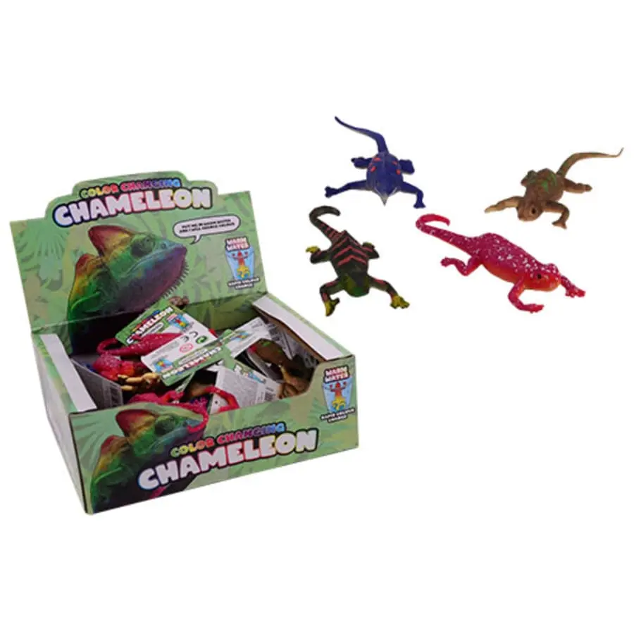 Rolig husdjurskameleont som verkligen ändrar färg! Lägg kameleonten i varmt vatten och se färgen ändras. Husdjurets längd är 13,5 cm. Blandat i flera färgalternativ. Säljs separat. Åldersrekommendation 3+ år. (Obs: Du kan tyvärr inte välja färg vid beställning från webbutiken. Vi levererar en slumpmässig färg beroende på lagersituation. Paketet innehåller en produkt.)