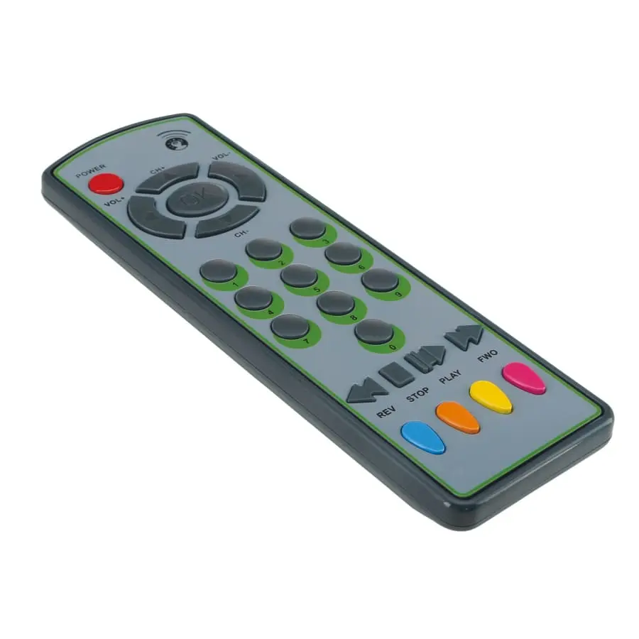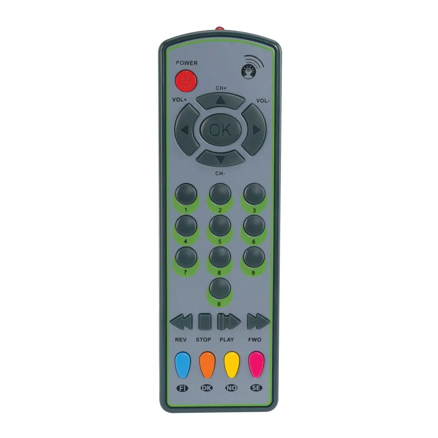 Denna fjärrkontroll kan även användas av de yngsta i familjen. Barnets egen fjärrkontroll har många knappar och ljud som är roliga att utforska. 2 x AAA batterier medföljer. Rekommenderad ålder: över 1 år.