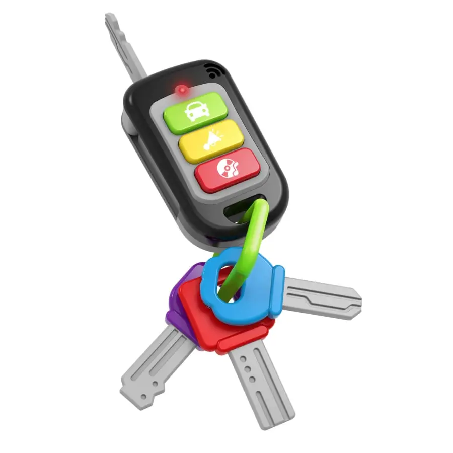 W2Play My First Car Keys are just like the real ones and feature many functions. Press the buttons and press the key down and pop it up again. The key ring holds extra three keys to play with. Light and sound effects. Batteries 2 x AAA incl. 1+
