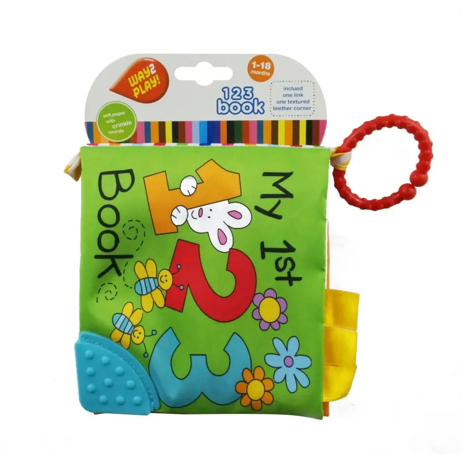 The brightly coloures soft baby book has fun pictures that the baby likes to explore. A corner of the book is a teether. The book features a practical ring which allows you to attach it to the stroller. 3+